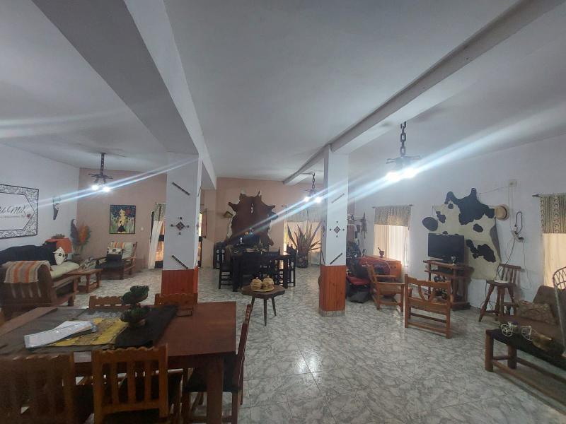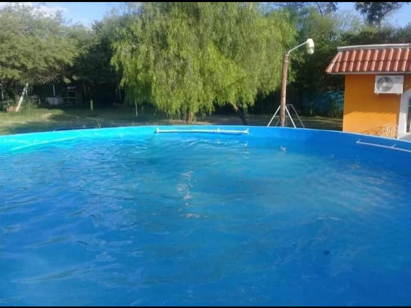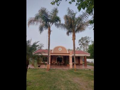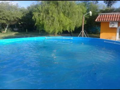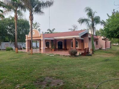 Distribución: Casa construida en planta baja, compuesta por: *Living comedor Amplio (9,50 metros por 8,50 metros aproximadamente); *Cocina (Incluye mesada granito y bacha doble de acero inoxidable, mueble de alacena y bajo mesada madera, cocina 4 hornallas y horno); *2 Dormitorios; *2 Baños completos (Con inodoro, bidet, bacha de lavar y ducha, todo con grifería); *Galería semicubierta; *Deposito cubierto (Con baño); *Patio trasero parquizado (Amplio con pileta de material de 45.000 litros); *Patio delantero parquizado; *Amplio terreno cerrado en su totalidad con alambrado olímpico perimetral. Superficie terreno: 32 metros de frente por igual contrafrente, por 274 metros de fondo (8.800 metros cuadrados aproximadamente). Superficie cubierta: 240 metros cuadrados construidos aproximadamente. Servicios: Agua de red fría y caliente cuenta con 3 tres perforaciones, energía eléctrica, teléfono, cable e internet. INMOBILIARIA TAGLIAVINI - Tel: (0385) 421-2258 / 423-7596 -