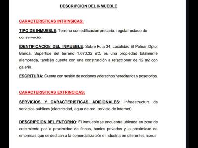 TAGLIAVINI VENDE TERRENO - B° SANTA CLARA - AV. SAN PABLO - LA BANDA - SGO. DEL ESTERO
