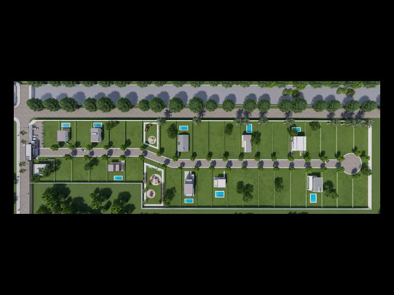 Distribución: Predio cerrado de 2,1 hectáreas, con acceso único controlado. Consta de 38 lotes de los cuales 1 posee casa construida, forestación y aéreas comunes.